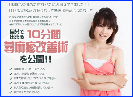 世間一般的に言われている方法ではなく今まで、知られていないまったく新しい方法で、薬や危険な方法を使わず体に優しい自然な方法で蕁麻疹を改善する事が出来る野池式蕁麻疹改善術の効果を公開しています。
